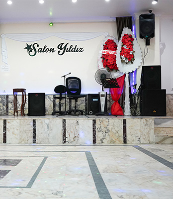 550 metre kare büyüklüğünde 500 misafiri rahat şekilde ağılayabileceğiniz düğün, kına, nişan, sünnet düğünü, toplantılar ve toplu etkinlikler için uygun salona ek olarak küçük kafetersı bulunmakta. Konumu sayesinde park problemi yaşanmamakta.